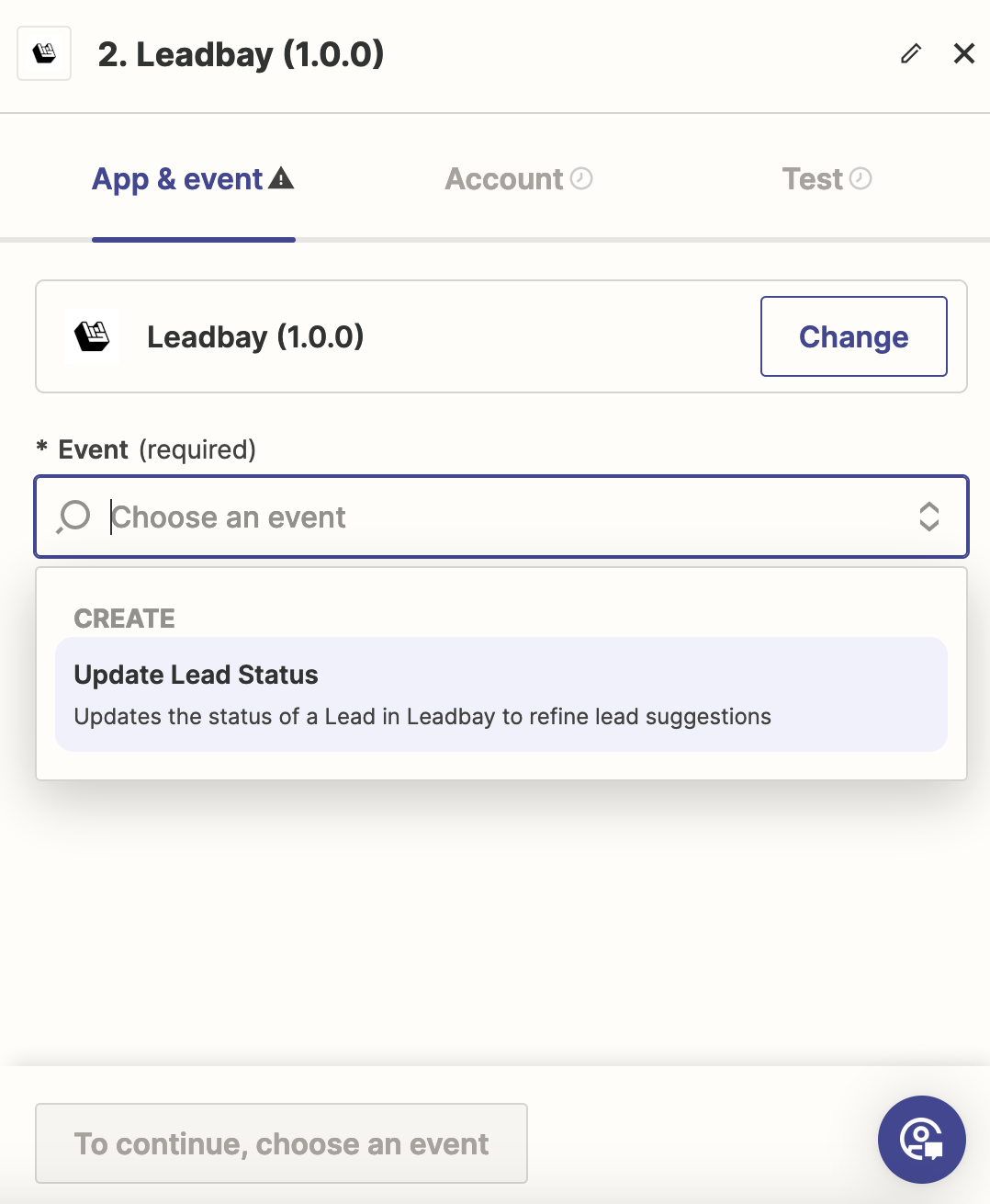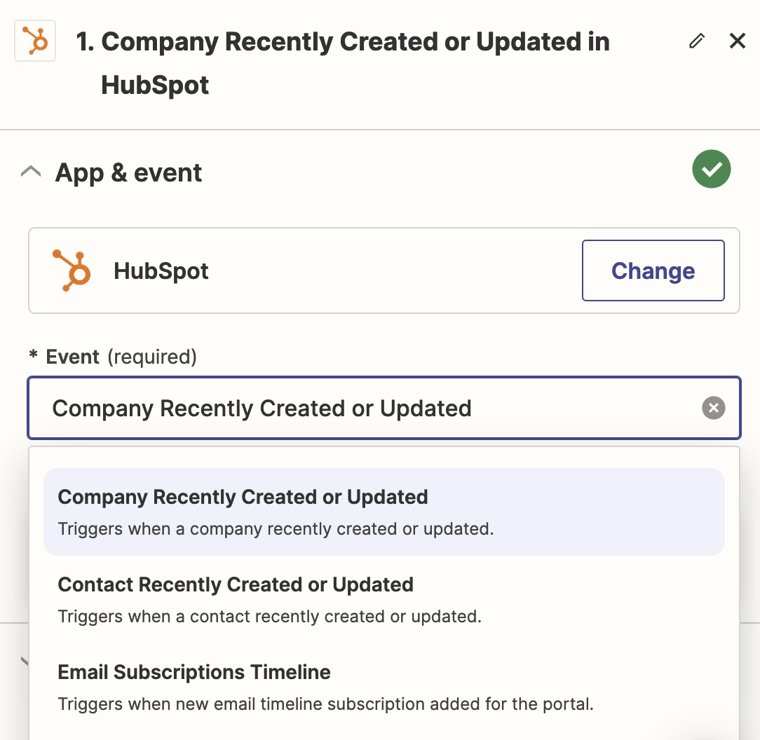 Choisissez un événement pour déclencher l’exportation des données vers Leadbay. Assurez-vous qu’à chaque fois qu’il y a une nouvelle entreprise ou un changement de statut (par exemple, gagné, perdu), votre CRM informe Leadbay.