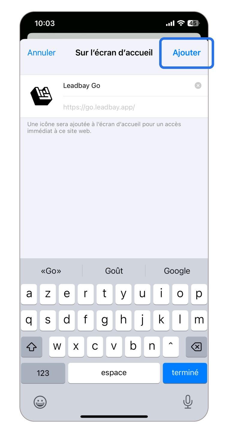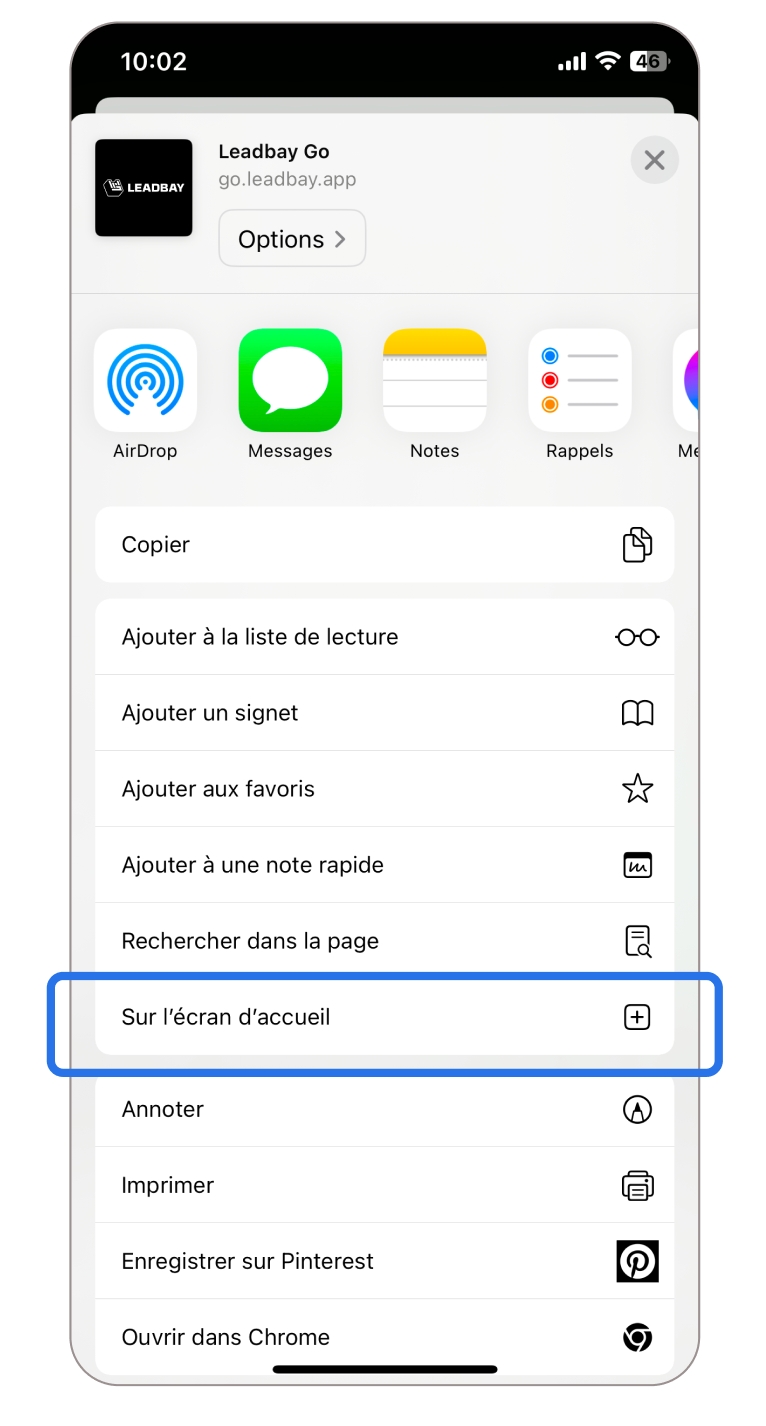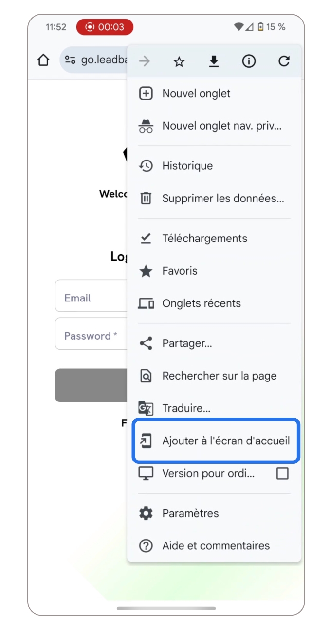 Sélectionnez « Ajouter à l’écran d’accueil ».