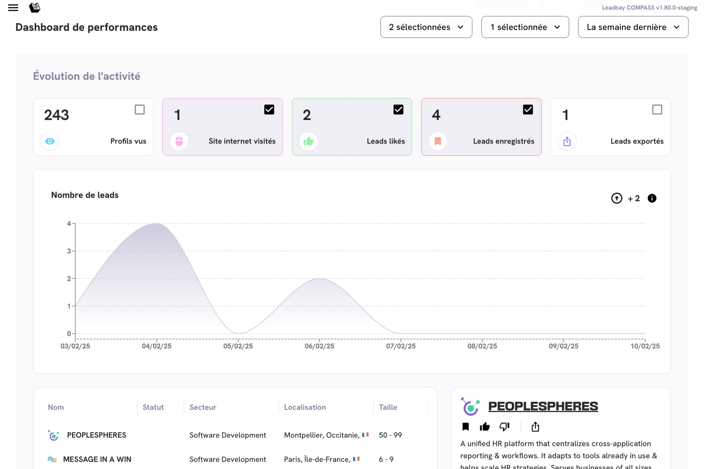 Le tableau de bord permet aux utilisateurs individuels de revoir facilement leurs activités passées et aux responsables d’équipe d’obtenir des informations sur l’activité de prospection de leurs membres d’équipe. C’est un outil idéal pour orienter les efforts de l’équipe dans la bonne direction.